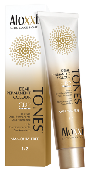 - Para una mezcla óptima de gris y blanco o para obtener resultados de color intensos, mezcle 1 pinta de TONES + 1 pinta de activador en crema Aloxxi 7 Vol. (2%). El tiempo de exposición puede extenderse hasta 40 minutos.