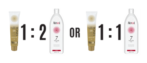 - Mezclar 1 pt de Aloxxi TONES® + 2 pts de Aloxxi 7 Vol.(2%) Crema Activadora