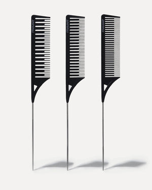 • Each incredibly lightweight comb features a 5 inch, stainless-steel pintail for effortless parting and sectioning.