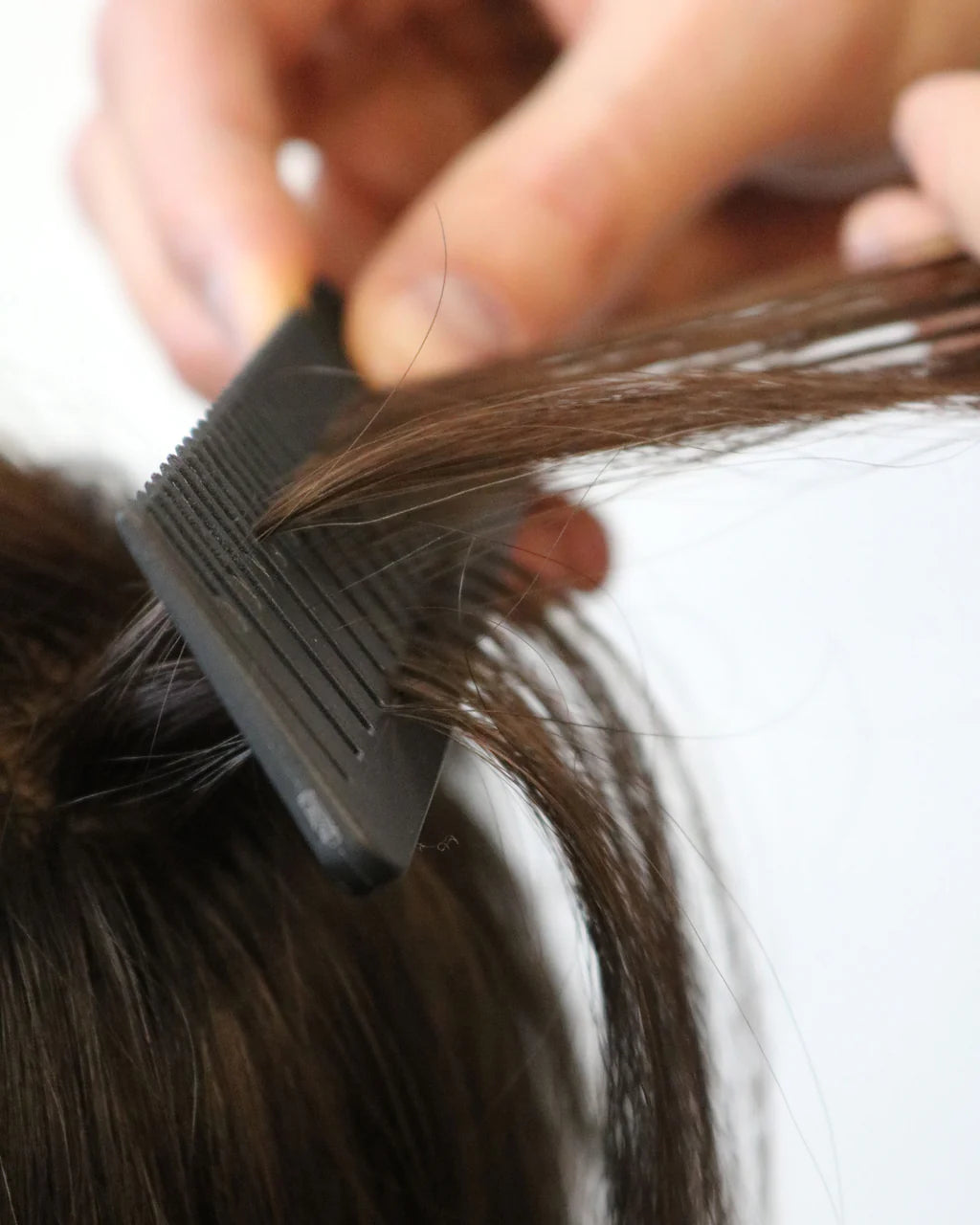 • One simple move of the comb creates several even sections ready to be painted, a step that typically requires several minutes of weaving with a pintail.