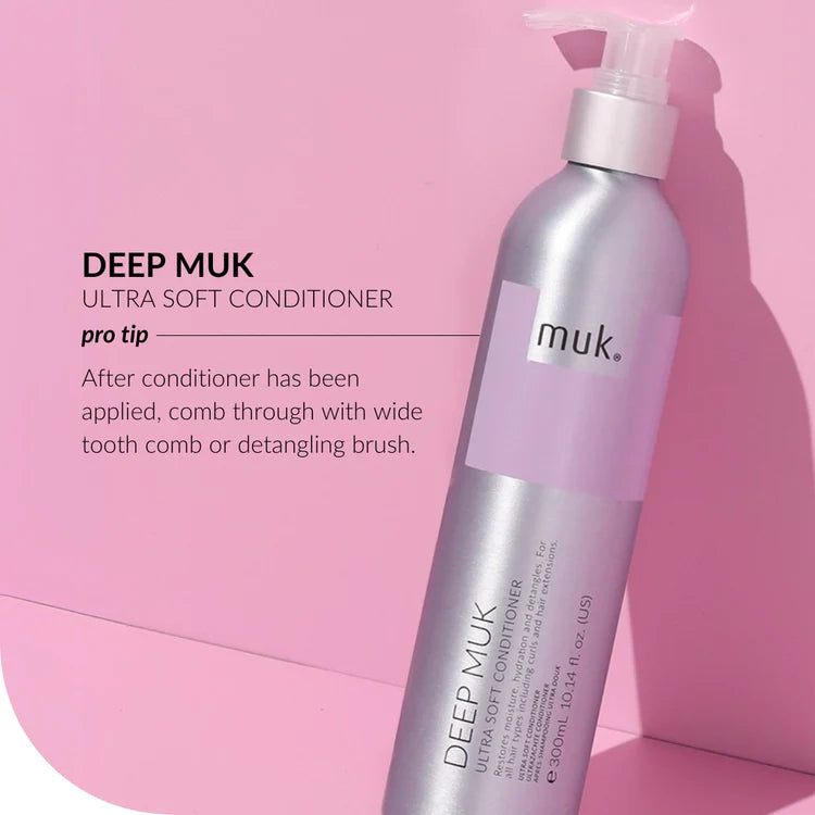 Massage conditioner through damp hair that has been freshly shampooed with Deep muk Ultra Soft Shampoo. Leave in for up to 5 minutes when extra conditioning is required. Rinse thoroughly.