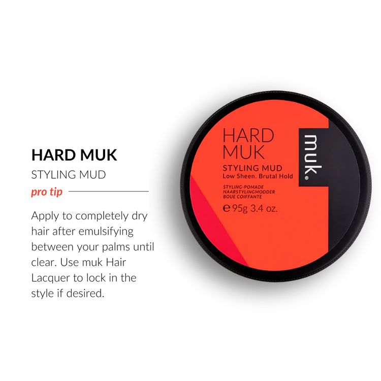 Pro Tip:For maximum texture + hold, begin with Hard muk Texture and Styling Shampoo, spritz with Beach muk and dry with hair dryer, then apply Hard muk Styling Mud.