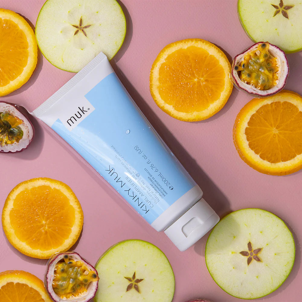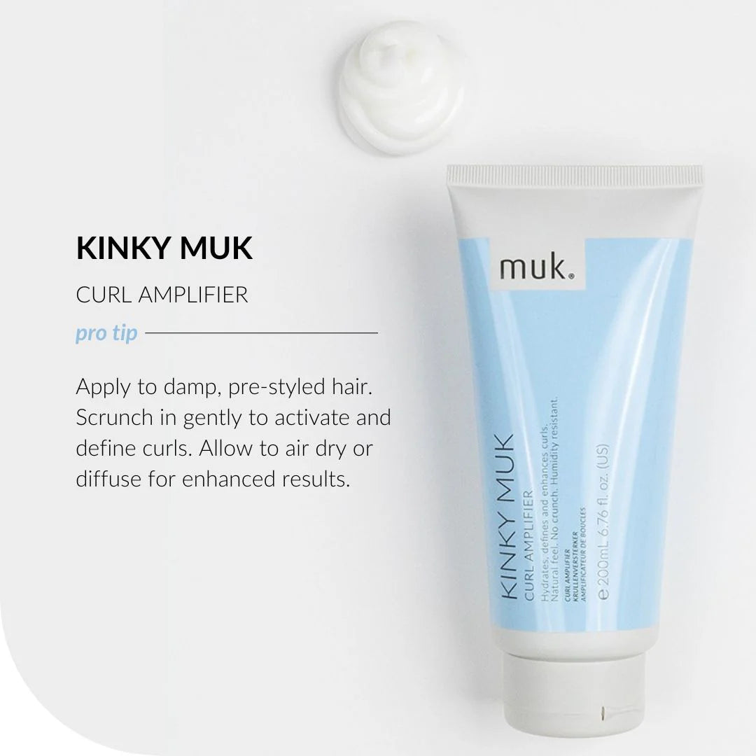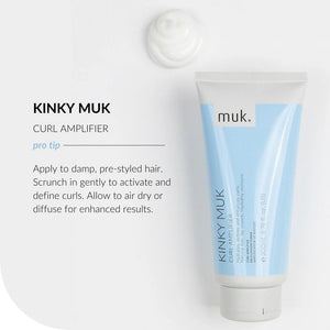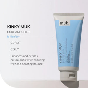 Kinky muk Curl Amplifier provides luxurious light hold curl definition with hydration and frizz control for natural movement.
