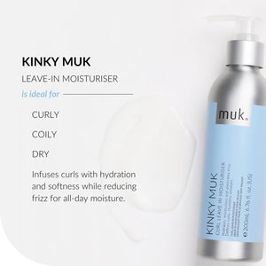 Kinky muk Curl Leave-In Moisturiser is a luxurious leave-in cream for hydrating, smoothing frizz control and weightless shine.